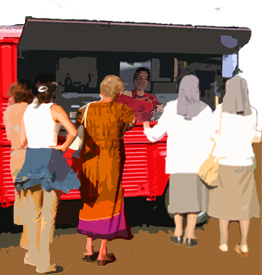 Selbstverständlich können Sie das feuerrote Crêpesmobil auch als Attraktion und Verkaufsfahrzeug in Ihre Veranstaltung integrieren. Überall einsetzbar, unabhängig vom Strom und Wassernetz. Trotz der historischen Originalität des Fahrzeugs wurden bei der Ausstattung moderne Anforderungen an Hygiene und Technik erfüllt. Ausgestattet mit Gasboiler, Frisch- und Brauchwassertanks sowie gasbetriebenen Crêpesplatten lässt sich das Mobil überall platzieren. |